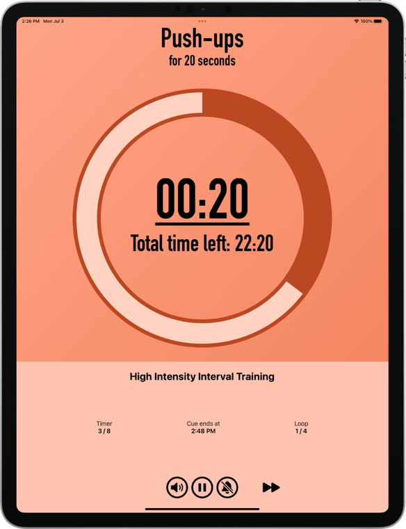 Cue It: Interval Timer is optimized for both iOS and iPadOS, and available as a universal download on the App Store.Cue It: Interval Timer supports 'Split View' and 'Slide Over' multitasking on iPadOS, so you can keep tabs on your timers while using other apps.
